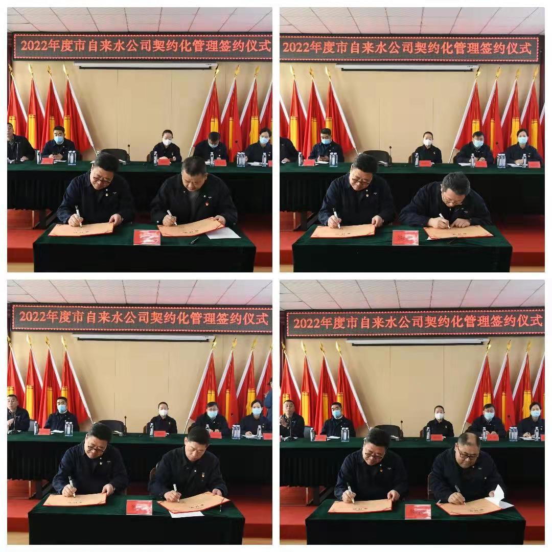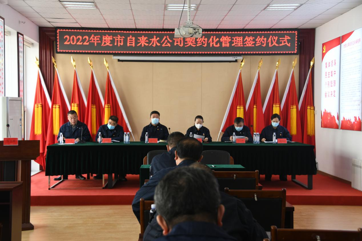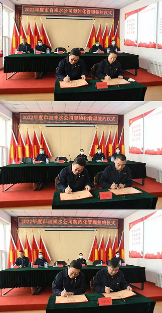 會(huì)上宣讀了市國資委《關(guān)于進(jìn)一步推進(jìn)國企改革三年行動(dòng)通知》、市自來水公司《提升營商環(huán)境?踐行優(yōu)質(zhì)服務(wù)承諾書。隨后,公司經(jīng)理李文生分別與分管生產(chǎn)、營業(yè)、監(jiān)察工作的三位副經(jīng)理簽定《2022年經(jīng)營目標(biāo)責(zé)任狀》,分別與七個(gè)二級單位法人簽訂《2022年經(jīng)營目標(biāo)責(zé)任狀》和《提升營商環(huán)境 踐行優(yōu)質(zhì)服務(wù)承諾書》。自來水工程有限公司經(jīng)理劉明、營業(yè)處處長王紅星就完成2022年度目標(biāo)任務(wù)進(jìn)行表態(tài)發(fā)言,設(shè)計(jì)院院長郭陽、信息運(yùn)營中心主任盧永志針對提升營商環(huán)境、踐行優(yōu)質(zhì)服務(wù)承諾進(jìn)行表態(tài)發(fā)言。他們表示,力爭在新的一年里,積極完成各項(xiàng)指標(biāo)任務(wù),砥礪前行,全力以赴做好供水工作,進(jìn)一步助力公司高質(zhì)量發(fā)展。同時(shí),確保安全優(yōu)質(zhì)供水,認(rèn)真踐行服務(wù)承諾,為提升我市營商環(huán)境貢獻(xiàn)自己的力量。