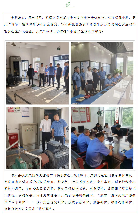 筑牢民生供水防線 守護(hù)雙節(jié)用水安全