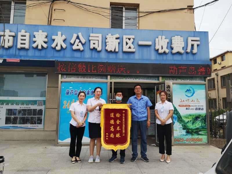 9月2日上午,市民趙先生來到市自來水公司新區(qū)一收費廳,親手將印著“拾金不昧、道德高尚”的錦旗交到工作人員手中,對自己的卡包失而復(fù)得表示感謝。