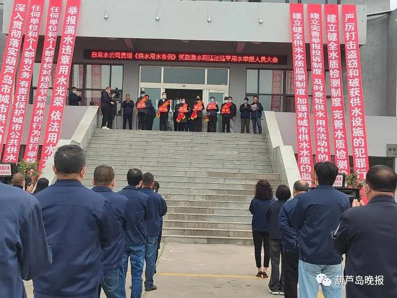 5月15日上午,市自來(lái)水公司召開(kāi)獎(jiǎng)勵(lì)漏水和違法違章用水舉報(bào)人員大會(huì),對(duì)5月1日以來(lái)首批舉報(bào)我市城區(qū)供水設(shè)施漏損現(xiàn)象及違法、違章用水行為的14名市民進(jìn)行了集中表彰并發(fā)放了獎(jiǎng)金。