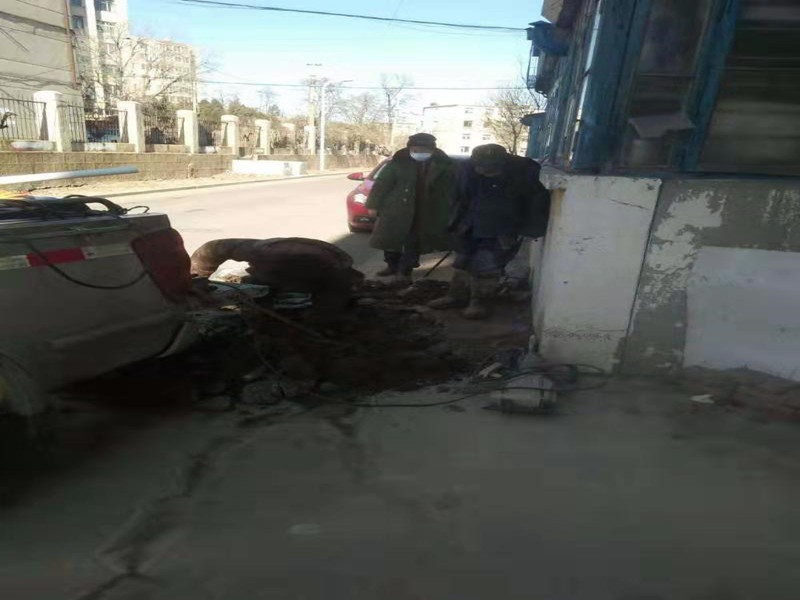農(nóng)歷臘月二十九中午,營業(yè)二分公司接到報修工單——“富達(dá)園小區(qū)管線漏水”,維修班全體人員放下還沒有吃完的午飯,立刻趕赴現(xiàn)場。由于管線深、土層漏水點不是管線損壞位置,沿著管線追了五米才找到漏點位置,所有人員一鼓作氣完成了搶修任務(wù),連續(xù)工作長達(dá)11個小時。