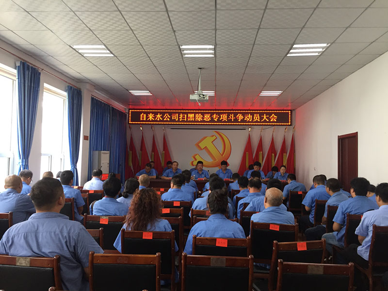 8月28日上午,自來水公司召開掃黑除惡專項斗爭動員大會?;鶎痈甭氁陨细刹?0余人參加了會議。會議由公司常務(wù)副經(jīng)理徐學(xué)良主持。