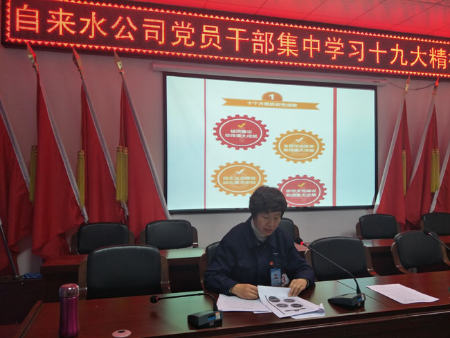 11月2日上午,市自來水公司組織黨員干部在大會議室集中學習十九大精神。會議由公司經(jīng)理、黨委副書記李文生主持,公司領導班子擴大成員、中層正副職干部共30余人參加了學習會議。