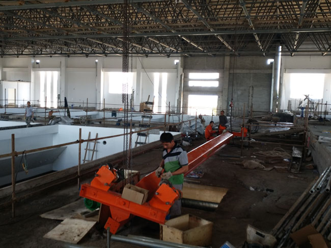 目前,該工程土建部分完成95%;廠區(qū)道路及綜合管網(wǎng)部分完成52%;工藝管線及設(shè)備安裝部分完成45%。水質(zhì)檢測(cè)中心土建部分完成75%。配水干管工程,征地和設(shè)計(jì)正在同時(shí)進(jìn)行中,預(yù)計(jì)10月末建成供水。水廠建成后可實(shí)現(xiàn)供水10萬噸/日,將大大改善老城區(qū)、船舶工業(yè)園區(qū)、龍港區(qū)的供水現(xiàn)狀,使供水管網(wǎng)輻射至打漁山工業(yè)園區(qū),有效改善我市供水緊張現(xiàn)狀。