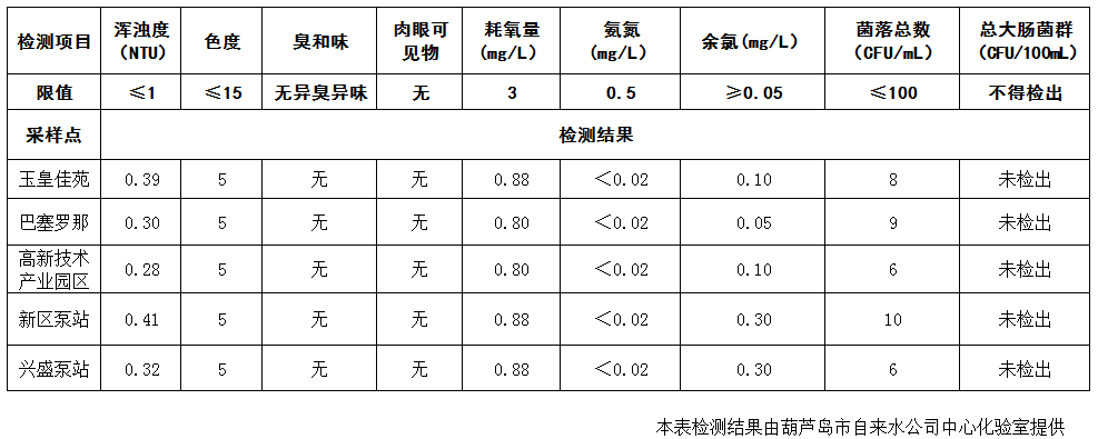 2017年8月16日葫蘆島市城市供水管網(wǎng)水質(zhì)信息