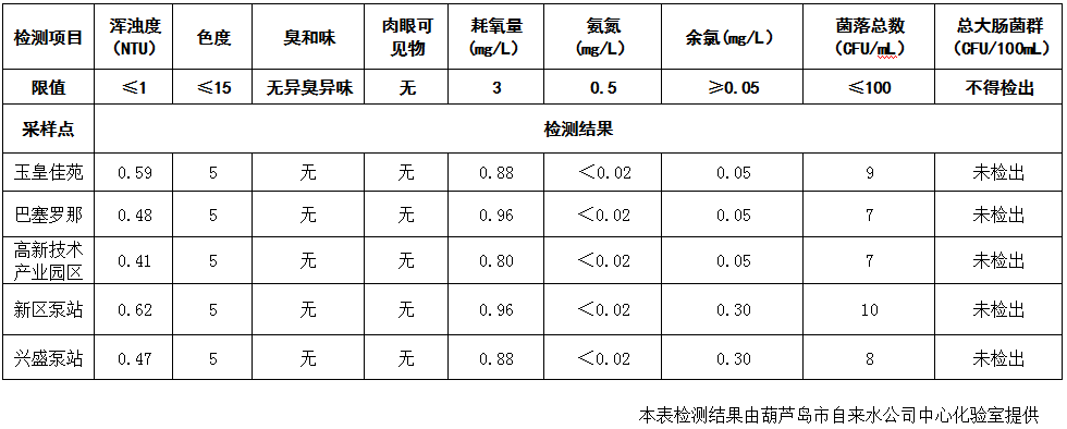 2017年6月7日葫蘆島市城市供水管網(wǎng)水質(zhì)信息