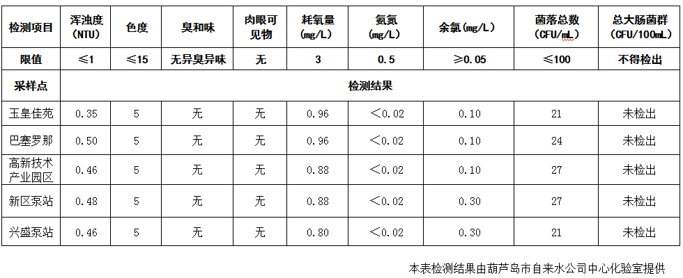 2017年5月17日葫蘆島市城市供水管網(wǎng)水質(zhì)信息
