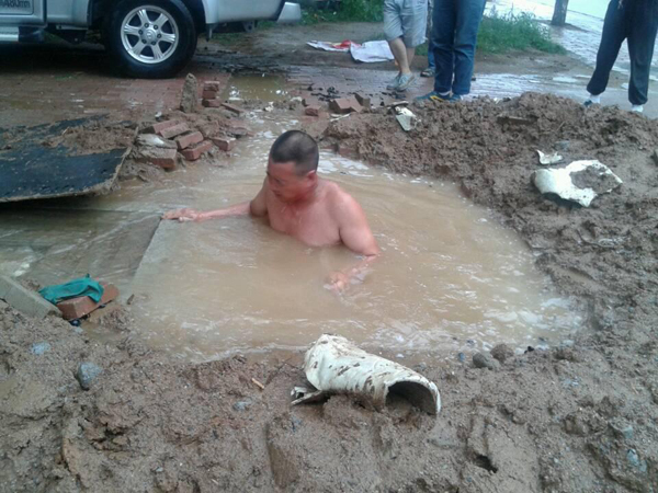7月20日上午,新區(qū)二所接到調(diào)度室電話(huà),位于市醫(yī)院二部附近的管線(xiàn)爆裂。接到電話(huà)后,所長(zhǎng)帶領(lǐng)維修人員第一時(shí)間趕到現(xiàn)場(chǎng)進(jìn)行搶修。由于漏點(diǎn)水量太大,兩臺(tái)水泵同時(shí)抽水也抽不過(guò)來(lái),想要順利維修只有關(guān)閉閥門(mén),但是閥門(mén)位于水下兩米多,又有大量泥漿混于其中,潛入水底關(guān)閉閥門(mén)的難度非常大。這時(shí)維修班長(zhǎng)張良奮不顧身跳入水中,經(jīng)過(guò)幾次潛入水下終于將閥門(mén)關(guān)閉,確保維修工作順利進(jìn)行。