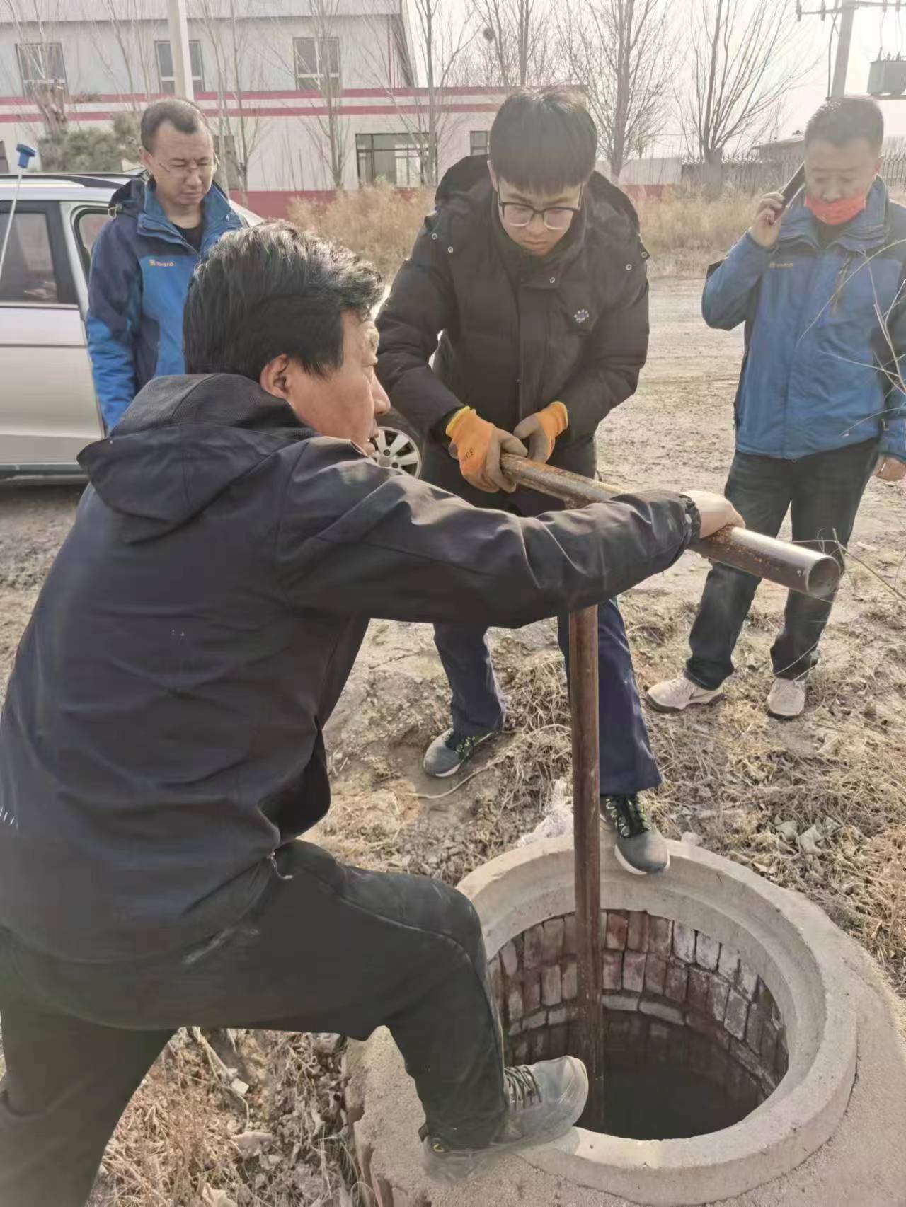 在完成了DN300線的檢測工作后,檢漏人員又將工作重點轉(zhuǎn)移到DN600管線的排查工作。相比較下DN600管線更長,供水區(qū)域更大,供水情況也更加復(fù)雜。檢漏公司與五分公司合作開展排查。在排查到同心路路口的時候,發(fā)現(xiàn)一機(jī)械水表流速100多立方米/小時,但經(jīng)過對此區(qū)域的用水戶調(diào)查后發(fā)現(xiàn)用量僅為6立方米/小時,判管線漏水。各部門通力合作,采用關(guān)閉閥門查看泵房電流及檢測流量等方式逐步縮小檢測范圍,公司副經(jīng)理馬旭、楊麗雪幫助協(xié)調(diào)打漁山管委會查找圖紙和保證施工順利進(jìn)行,黨委書記張旭濱也親臨現(xiàn)場指導(dǎo)工作,檢測工作得以快速推進(jìn),檢測范圍逐漸縮小,最后鎖定在一個分支管線20米的范圍內(nèi)一個被掩埋的閥門井,漏點最終得以確定,此漏點修復(fù)后,據(jù)信息中心數(shù)據(jù)監(jiān)測,每天可減少水量流失2400多噸。
