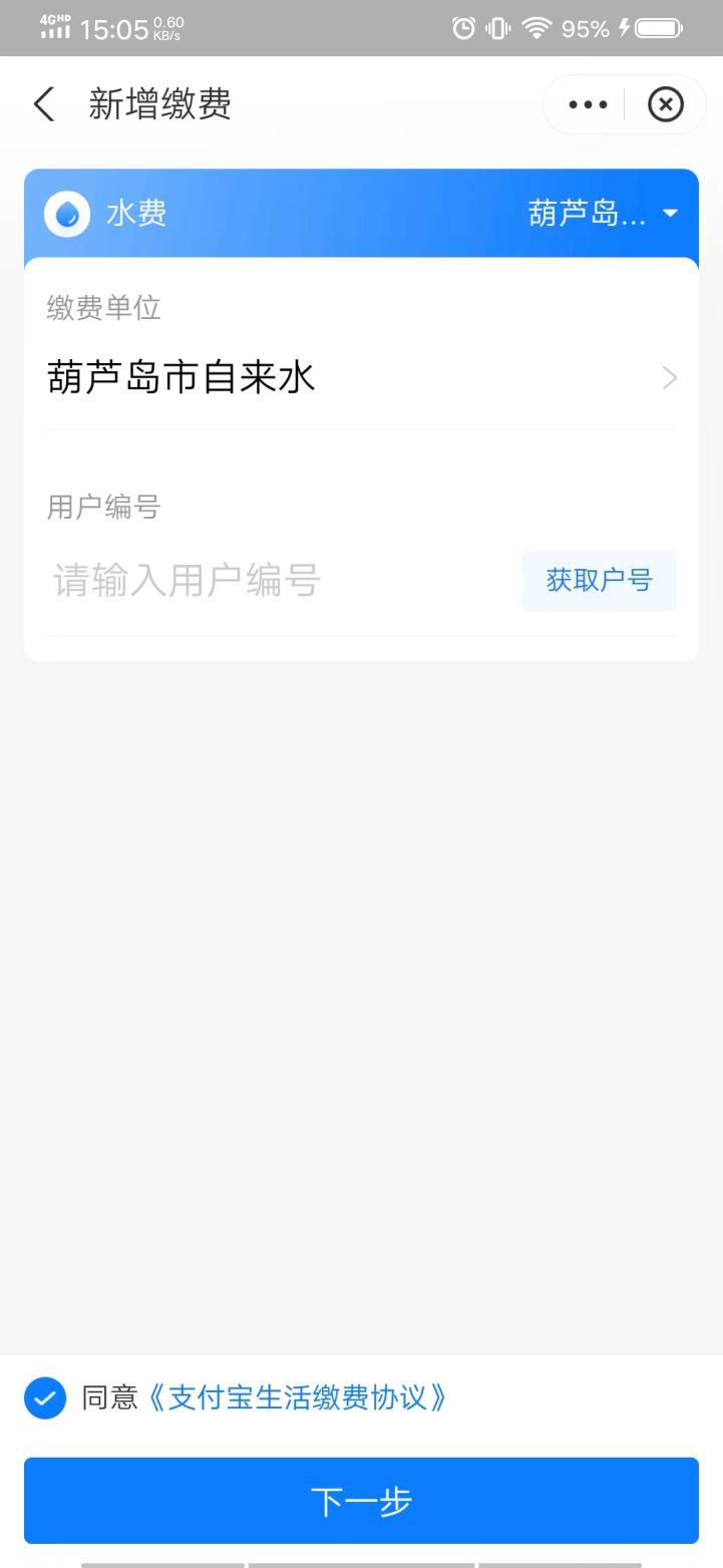 點(diǎn)擊繳費(fèi)單位(葫蘆島市自來(lái)水公司)—輸入用戶編號(hào)—點(diǎn)擊下方同意—填寫(xiě)家庭住址