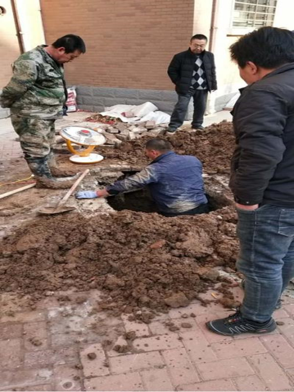 正月初二9:30,營業(yè)第二分公司接到用戶報修電話,反映教育園區(qū)B區(qū)73號樓前供水管線漏水。值班維修人員高峰、張良、張少輝第一時間趕赴現(xiàn)場,當(dāng)即投入到緊張的搶修當(dāng)中。尋找漏點需要破除冰層、挖掘凍土。為了搶時間,他們用鐵鎬、鐵鍬手工輔助除冰、破土。在室外溫度-15℃的工作環(huán)境下,經(jīng)過兩個小時的挖掘,終于找到漏點,順利完成維修。