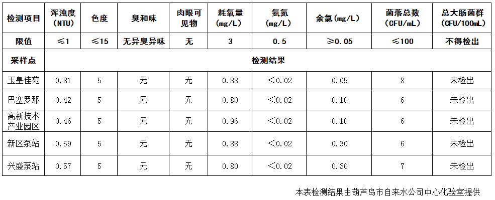 2017年2月22日葫蘆島市城市供水管網(wǎng)水質(zhì)信息